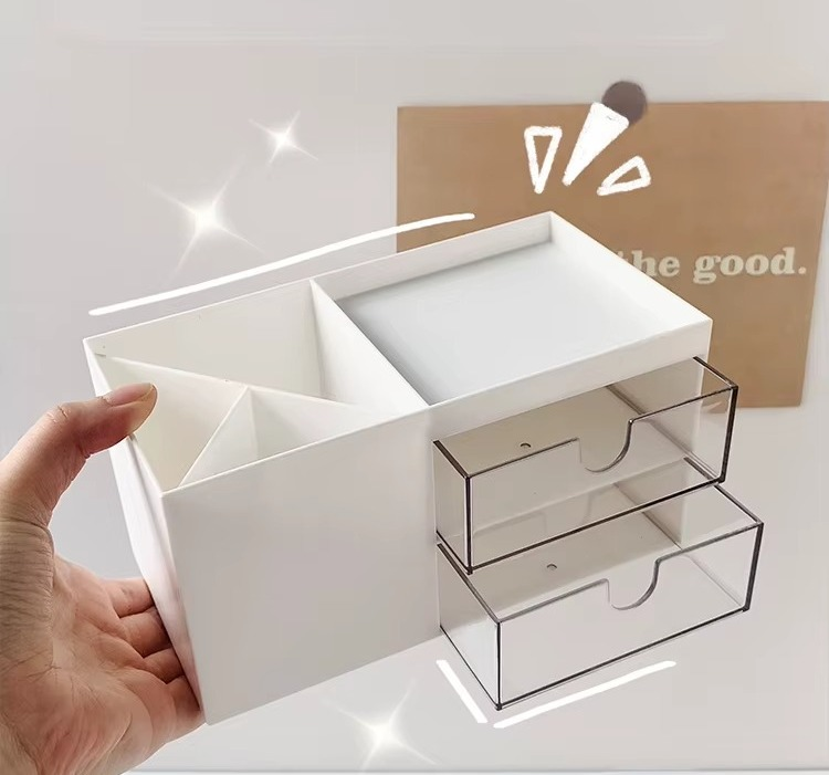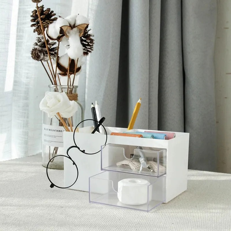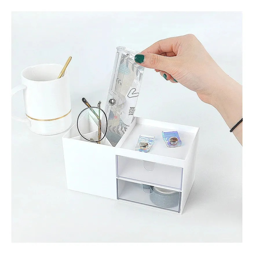 Organizador multiuso para exhibición de almacenamiento de cosméticos, librería, joyas, etc Organizador con dos cajoneras.
