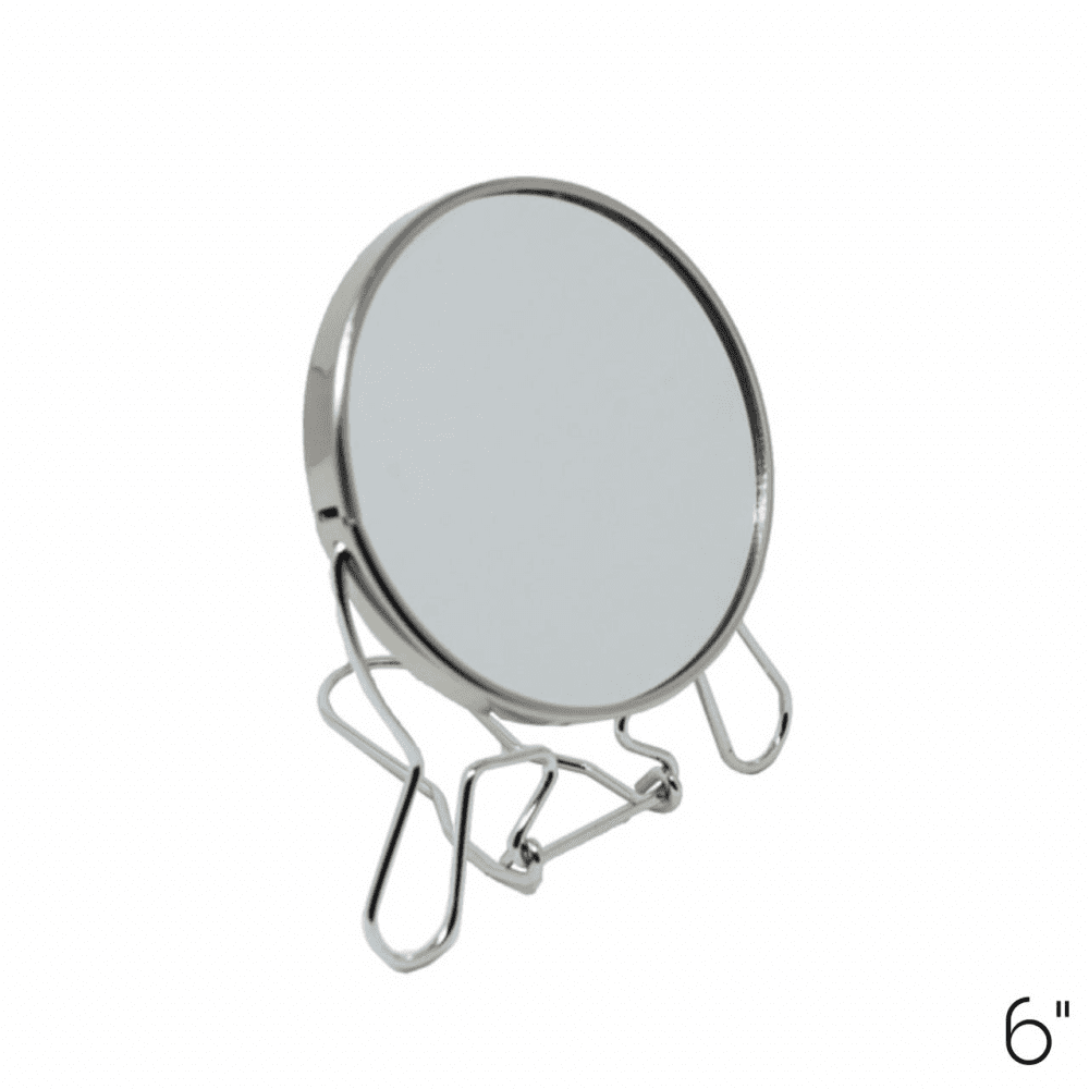 ESPEJO DOBLE FASE, TIENE UN LADO CON AUMENTO, MARCO METAL CON PERNO PLEGABLE, DIAMETRO 6 PULGADA.