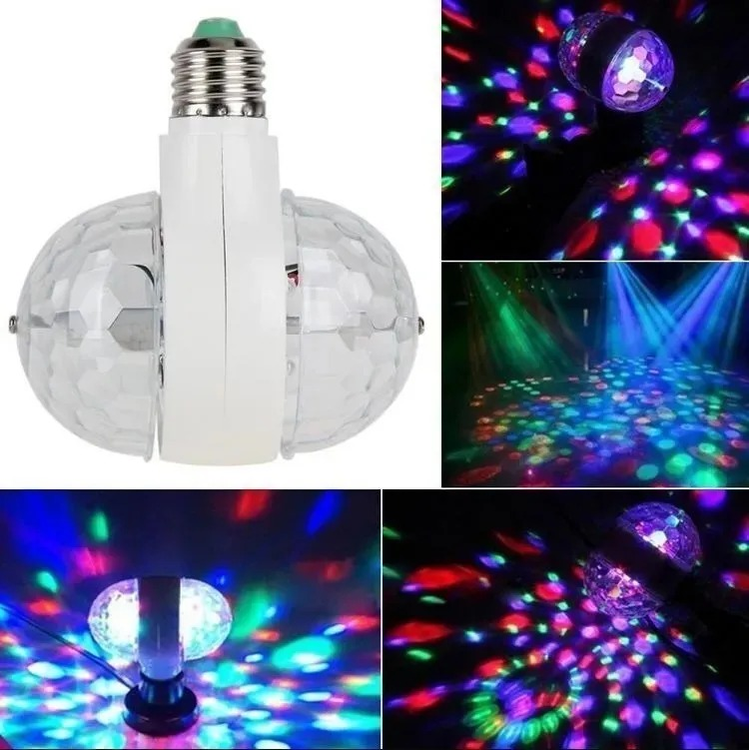 Lampara giratoria doble, es una evolución de las antiguas bolas locas. Tiene mayor potencial luminoso, con colores más vivos y mayor durabilidad. Fácil de usar. Puedes conectarla a cualquier enchufe convencional de tu casa, para que puedas usarla en cualquier ambiente que desees, salas de estar, garajes, dormitorios, bufés, discotecas, etc.