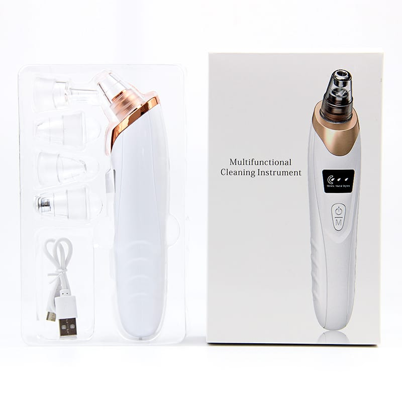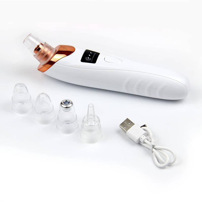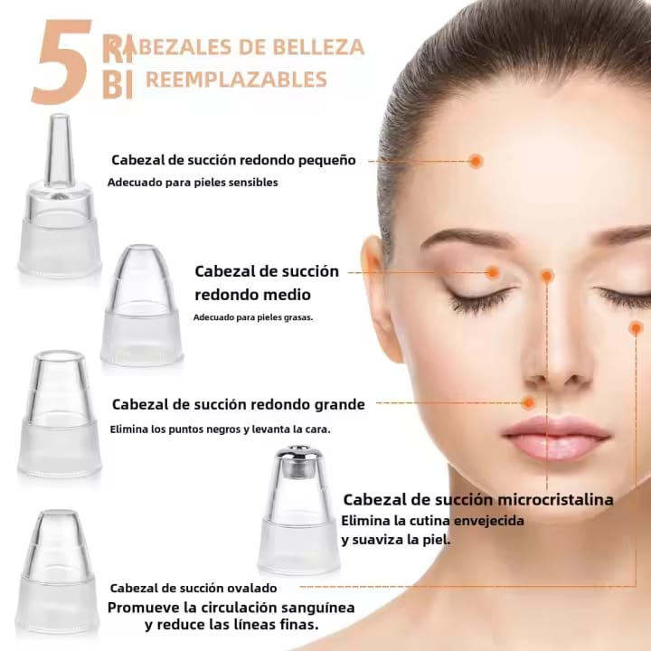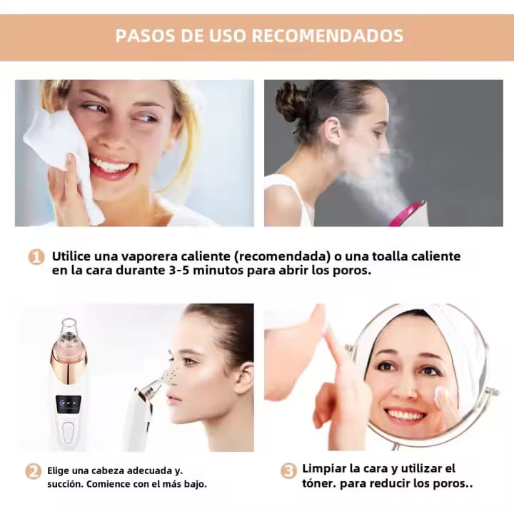REMOVEDOR DE ESPINILLAS PUNTOS NEGROS, LIMPIADOR DE POROS FACIALES, MICRODERMOABRASIÓN, RECARGABLE CONTENIDO: 4 Puntas Cable de carga usb Manual de usuario PUNTAS: