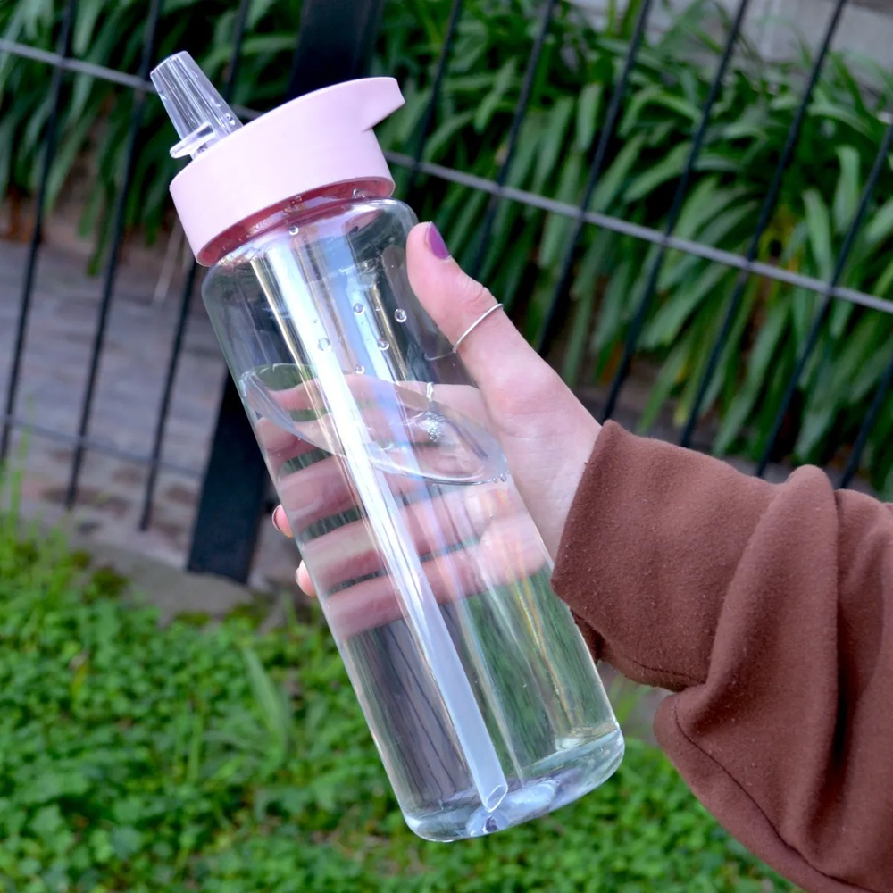 Botella plástica reutilizable BPA free de cuerpo translúcido. Contiene pico rebatible que al tener cerrado imposibilita la salida de líquidos, y al abrirlo permite tomar fácilmente mientras se realizan actividades deportivas. También la tapa lleva agarre para fácil traslado. Capacidad de 750 ml.