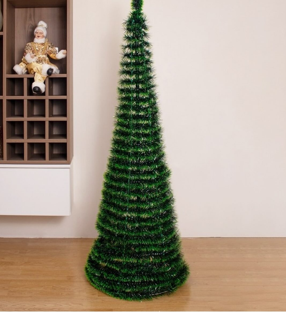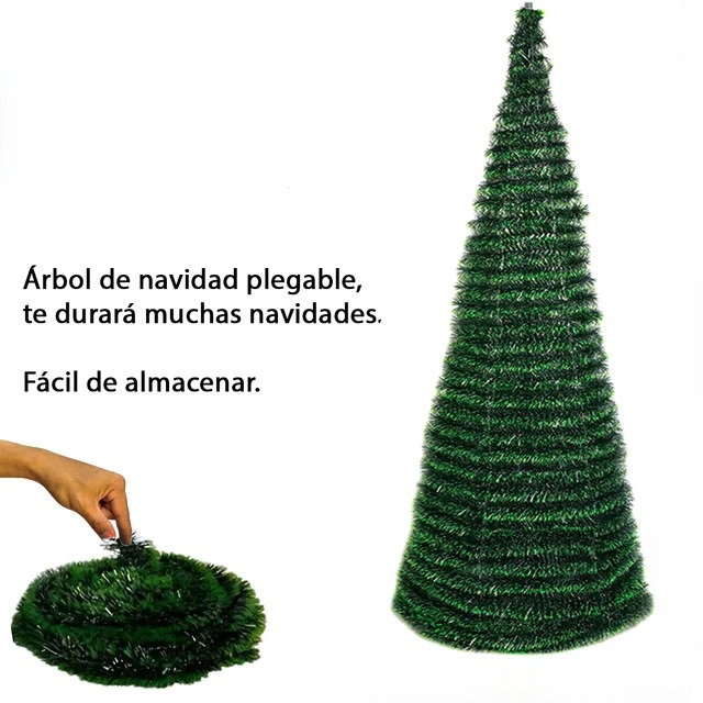 Lleva la magia de la Navidad a tu hogar de forma rápida y sencilla con este árbol de Navidad plegable y retráctil de 1,50 m de altura. Gracias a su diseño innovador, este árbol es extremadamente fácil de montar: simplemente despliégala y colócalo en la base. ¡Listo! En pocos minutos, tendrás un precioso árbol decorativo para celebrar las fiestas. Su vibrante color verde le da un aspecto frondoso y festivo, perfecto para adornarlo con tus adornos favoritos. Ideal para quienes buscan una solución práctica sin renunciar a la belleza, es perfecto para cualquier ambiente, ya sea en el salón, la oficina o en fiestas.