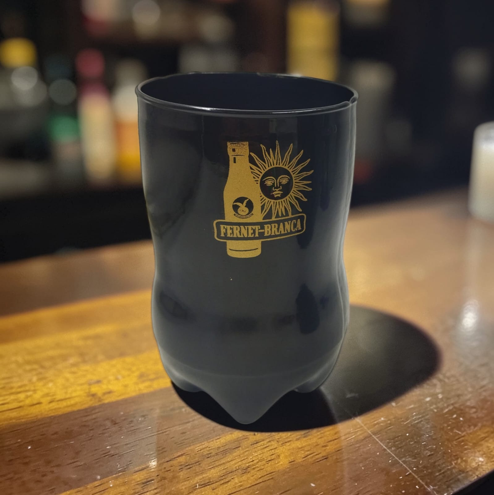 Vaso fernetero de vidrio color negro.
