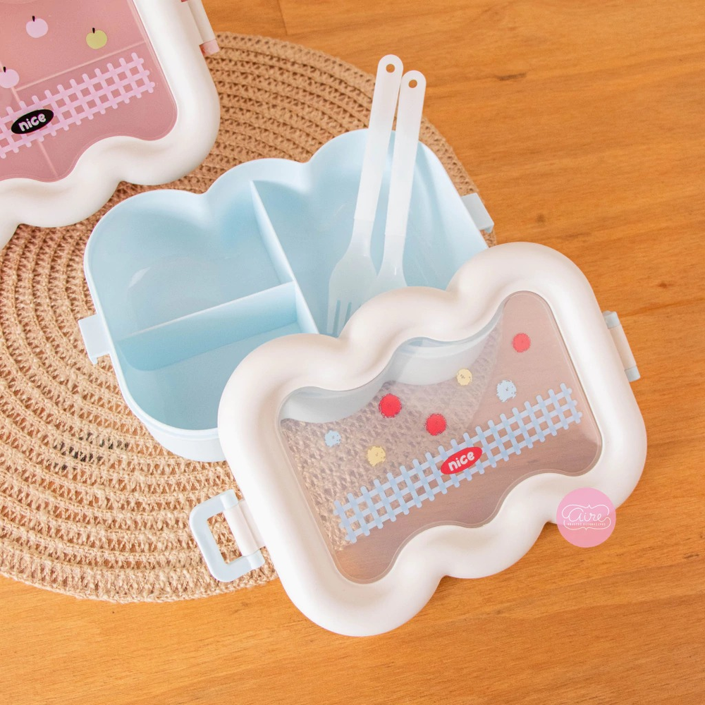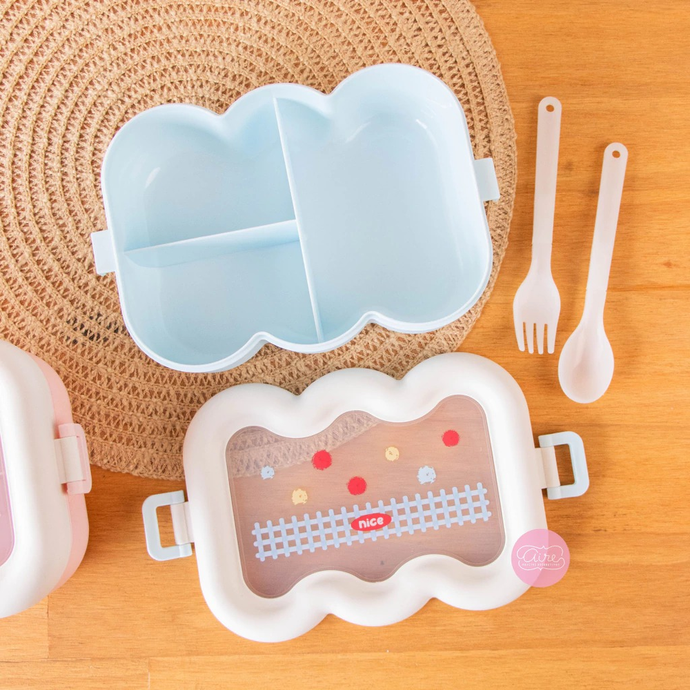 Lunchera con cubiertos (cuchara y tenedor) Medidas aproximadas: 21 x 14 x 7 cm Material Seguro: Hecha de PP5, el material más seguro para contacto con alimentos, y libre de BPA, garantizando tu tranquilidad. Uso: Apta para microondas, ideal para calentar tus comidas con facilidad. Color: celeste o rosa