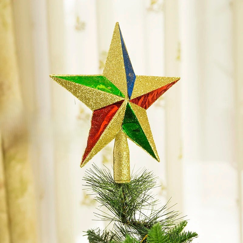 Puntal estrella para árbol navideño, estrella dorada con lados brillosos de otro color.