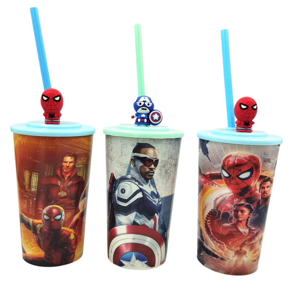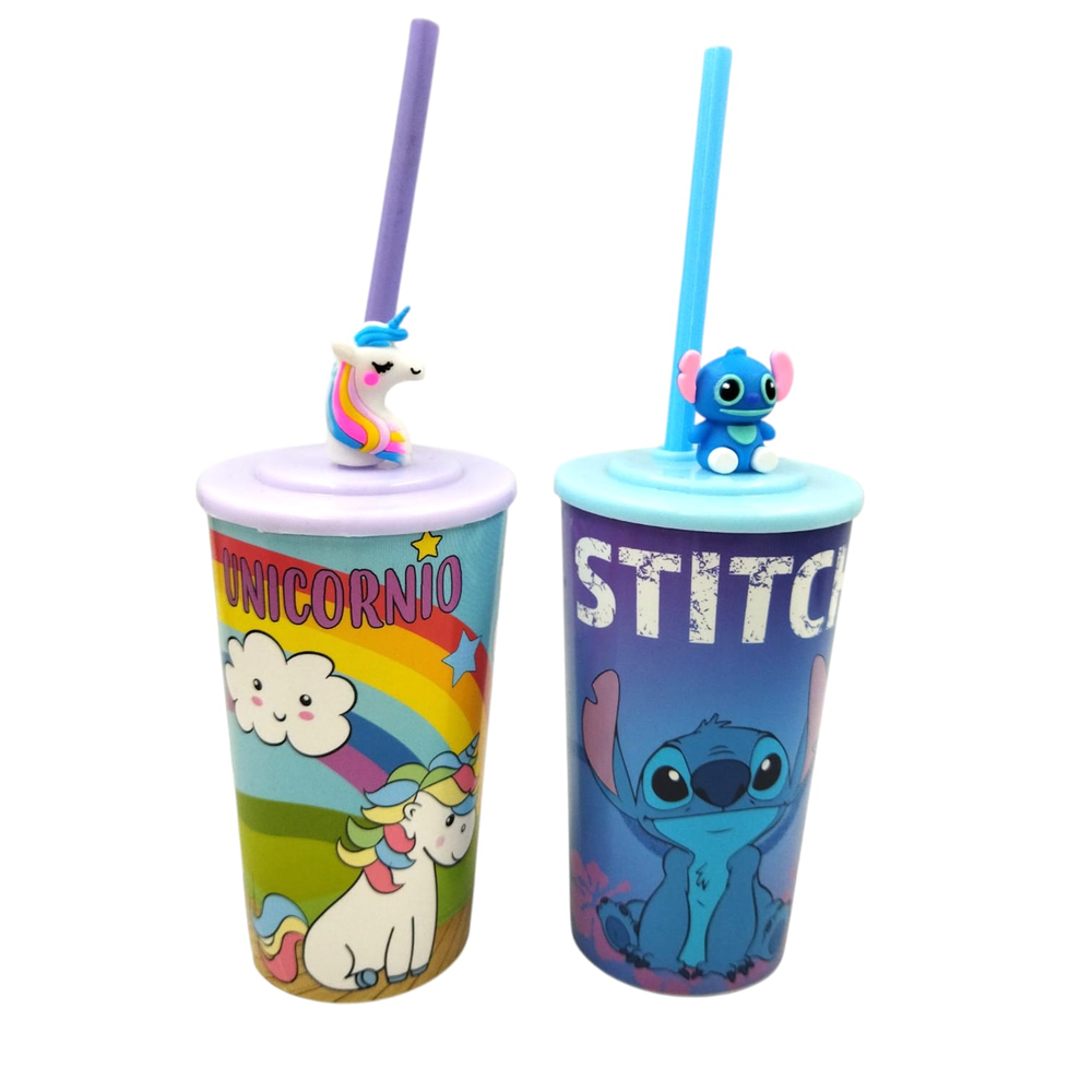 Vaso infantil con tapa y sorbete. La tapa incluye muñeco.