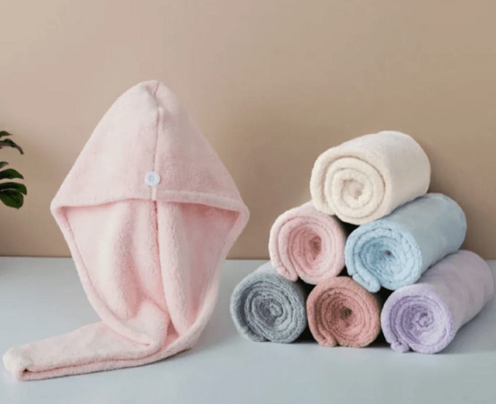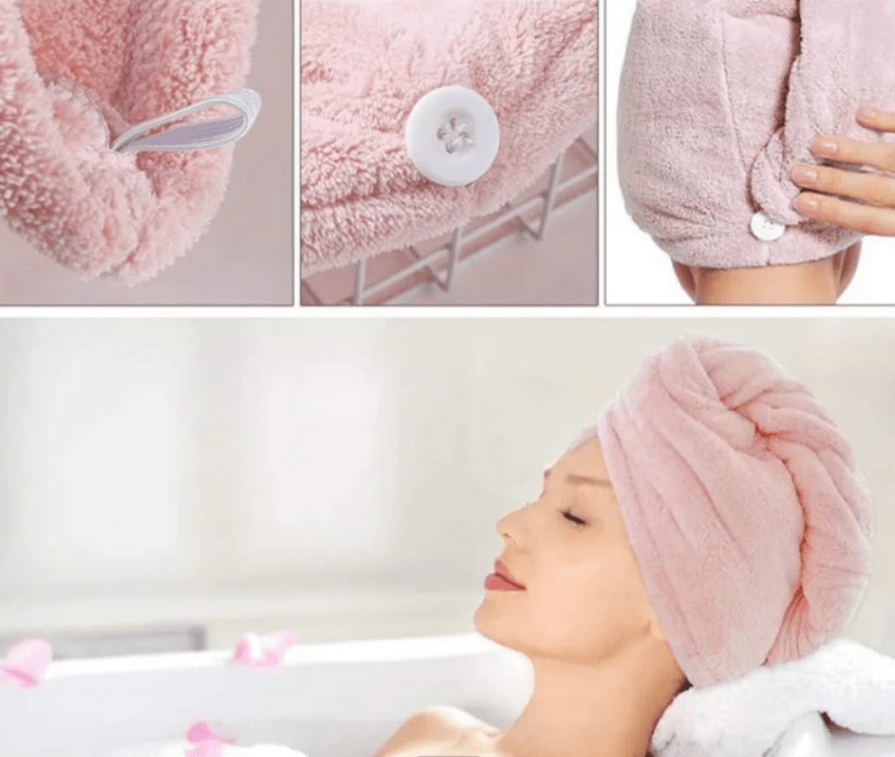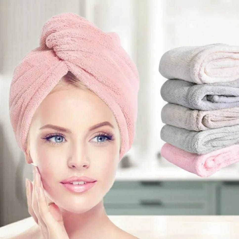 Toalla para el pelo, turbante de microfibra de secado rápido para el cabello, super absorbente, con botón.