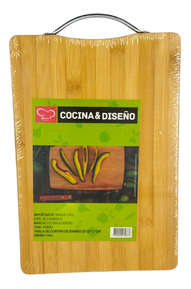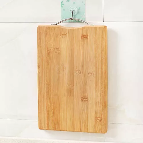 Tabla de cortar o picar. material bambú, tamaño: largo: 30cm, ancho: 20cm grosor: 1,7cm, Con manija de acero para colgar , Excelente calidad y diseño para el uso en su cocina.