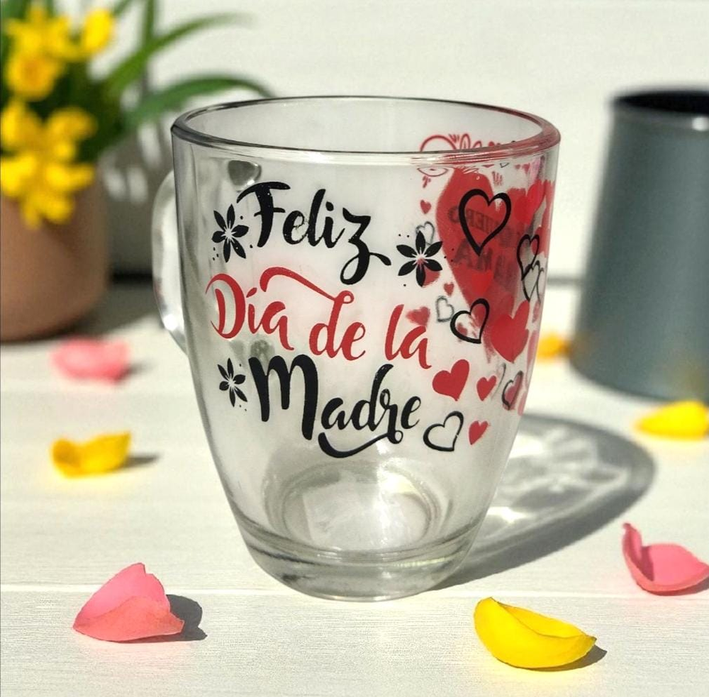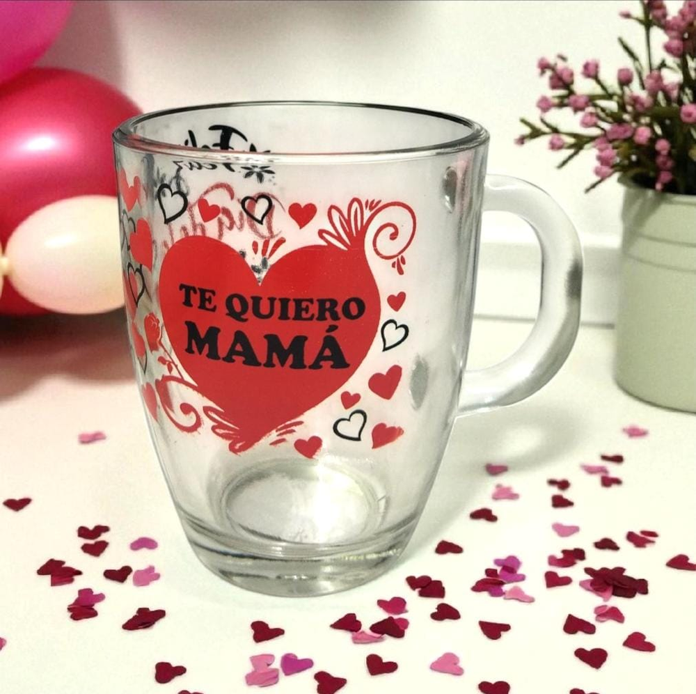 Taza de vidrio linea MAMÁ, feliz día de la madre, te quiero.