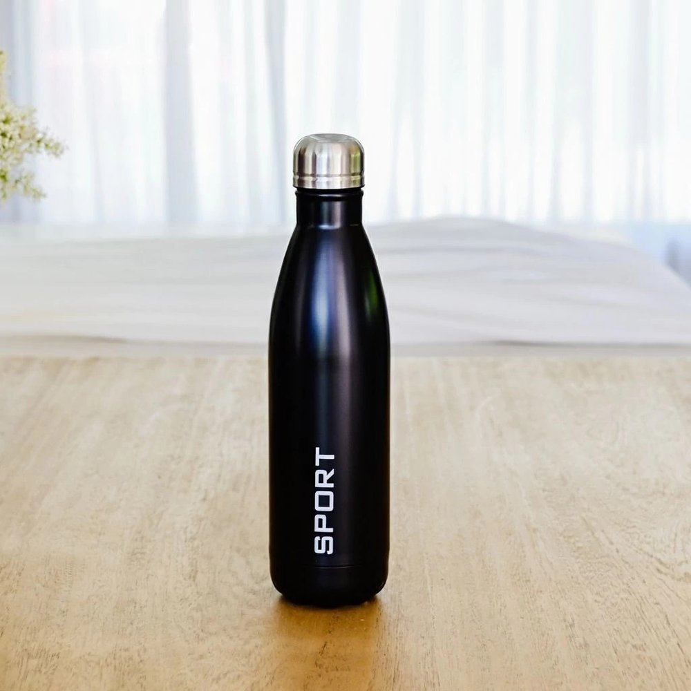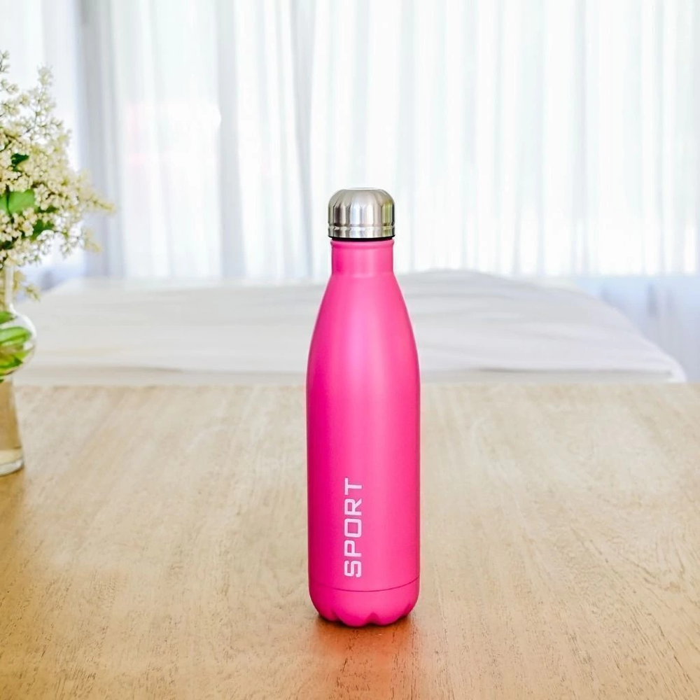 Botella deportiva de 800 ml en acero inoxidable con doble pared térmica, ideal para acompañarte todo el día y mantener tus bebidas frías o calientes donde vayas. Con bomba rebatible y tapa hermética, combina funcionalidad y diseño para que hidratarte sea un placer, sin drama
