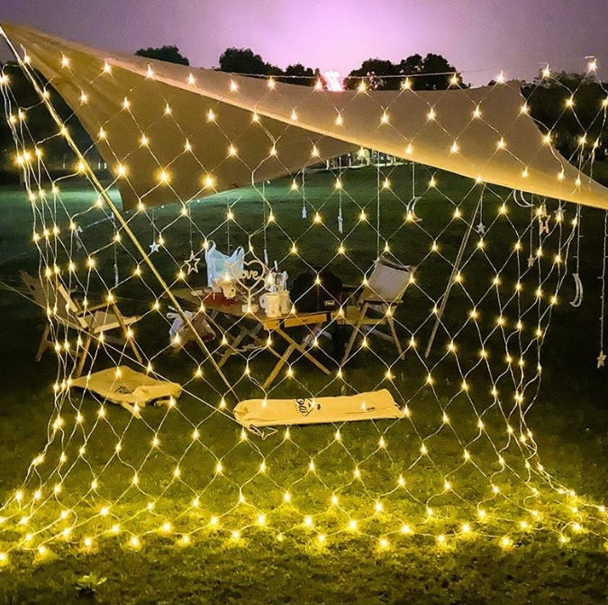 Red de 120 LED color cálida, ancho 2 metro, con enchufe.