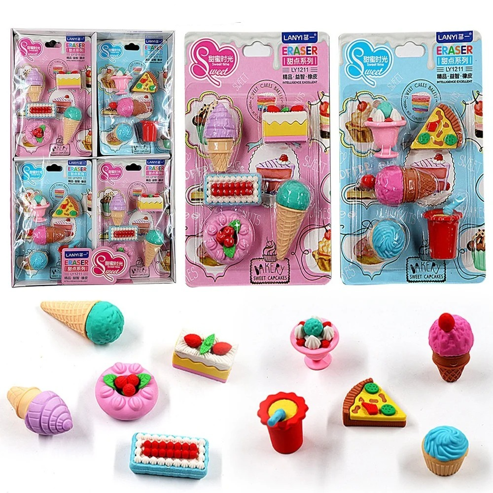 5 goma con tematica de comida.