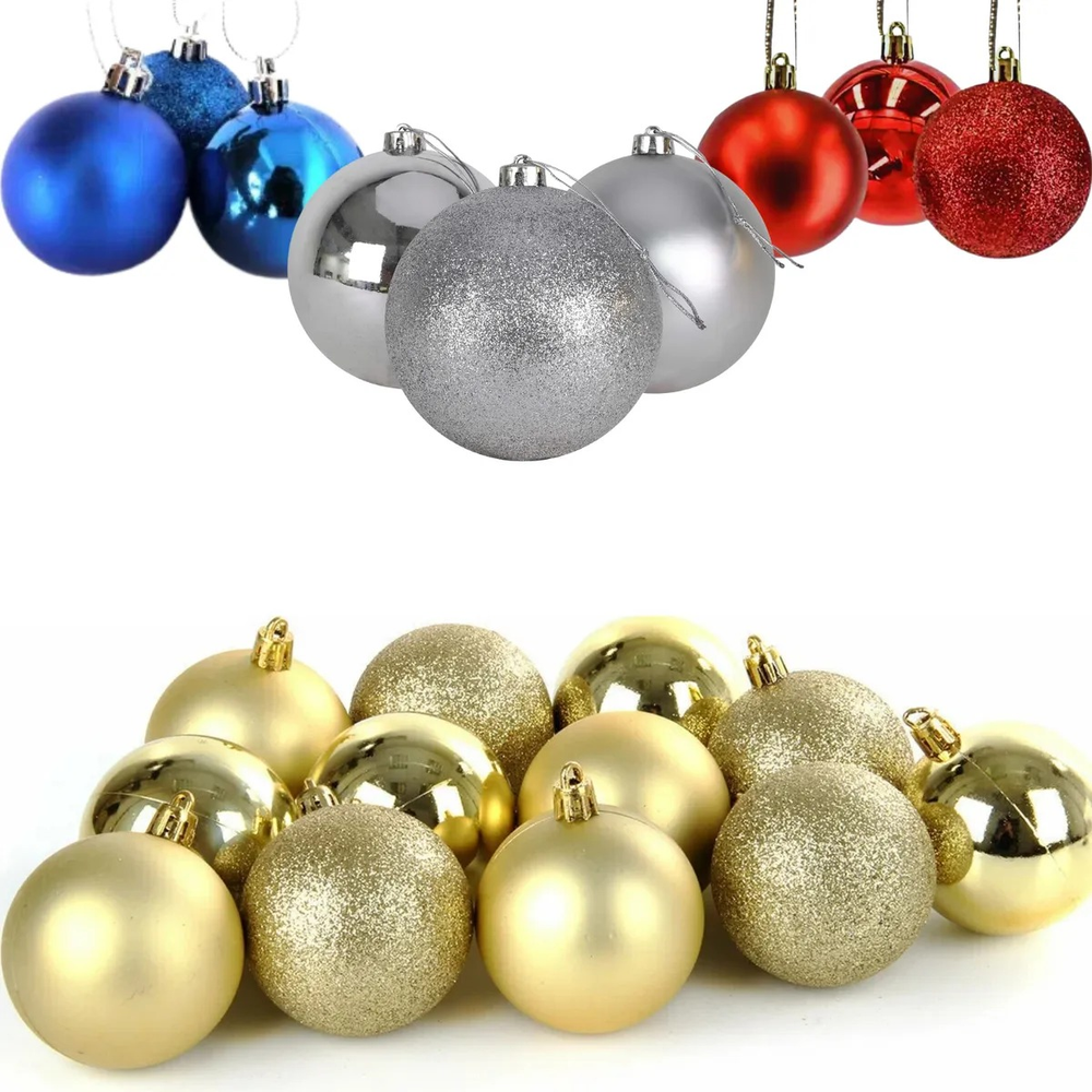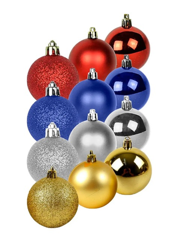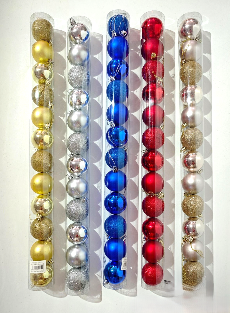 Adorno nav. 12 bochas surtidas de 4 cm aproximadamente cada uno. 4 metalizada, 4 brillo, 4 matte.