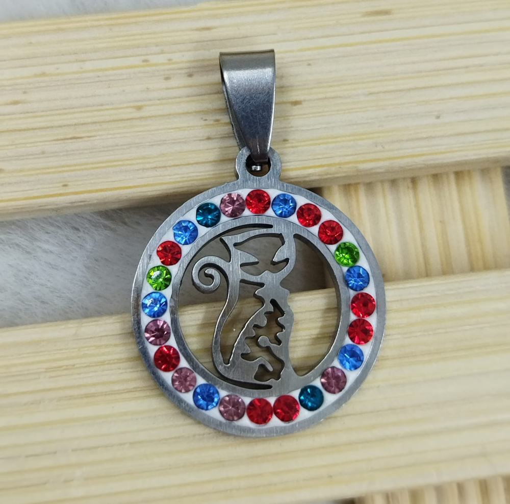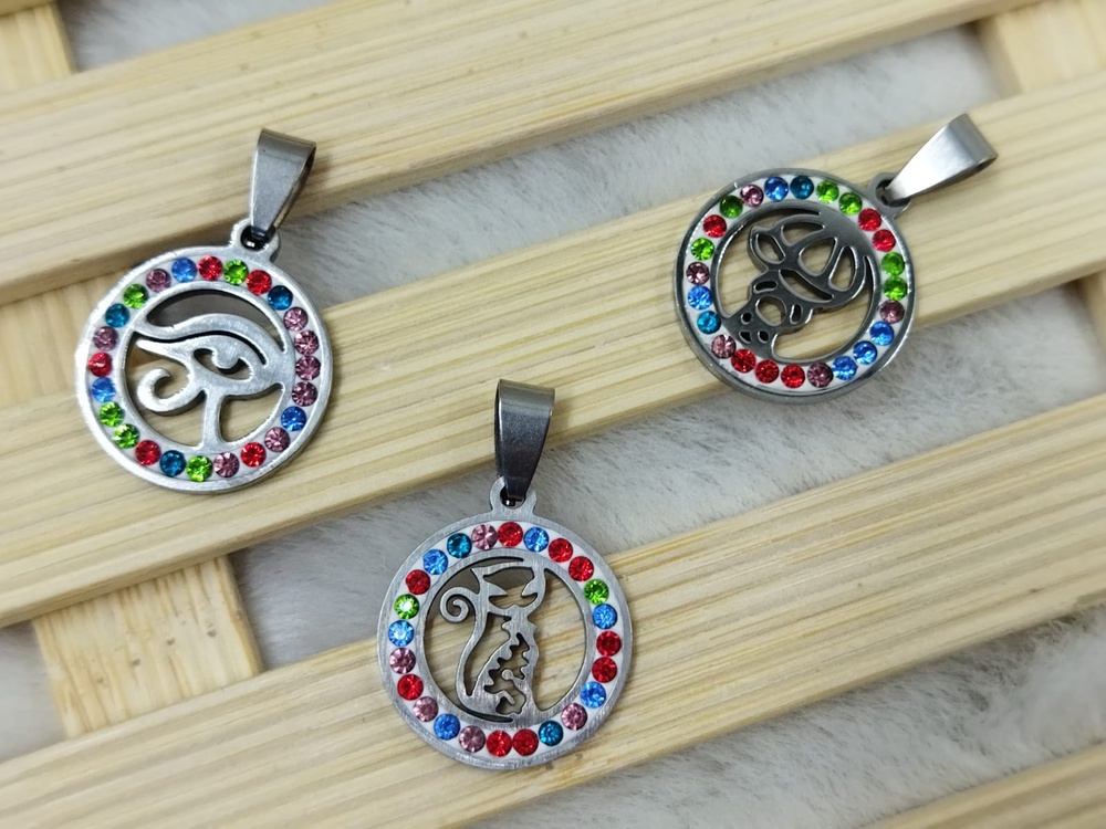 DIGE ACERO REDONDO CON STRASS DE COLORES, VARIOS MOTIVOS
