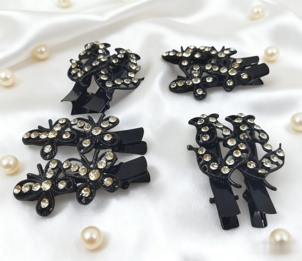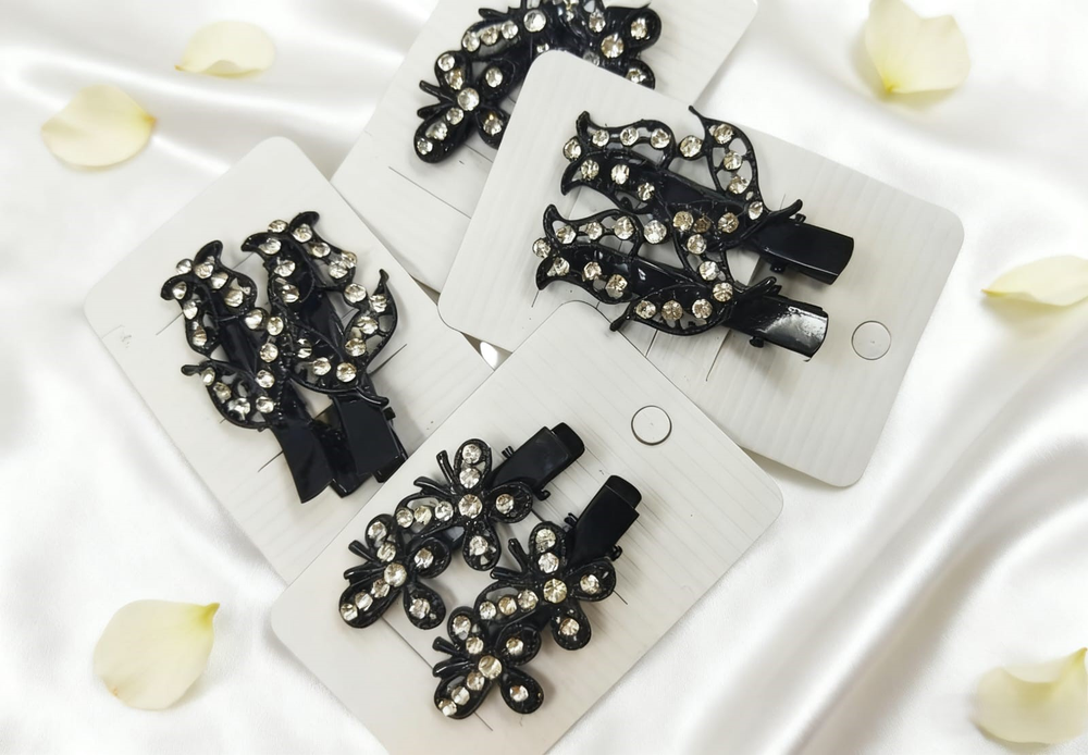 Hebillas para pelo de metal con strass plateado, blister de 2 unidad.