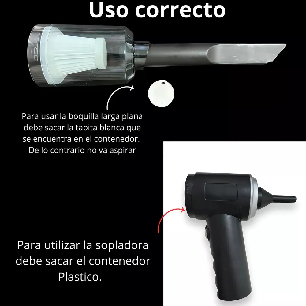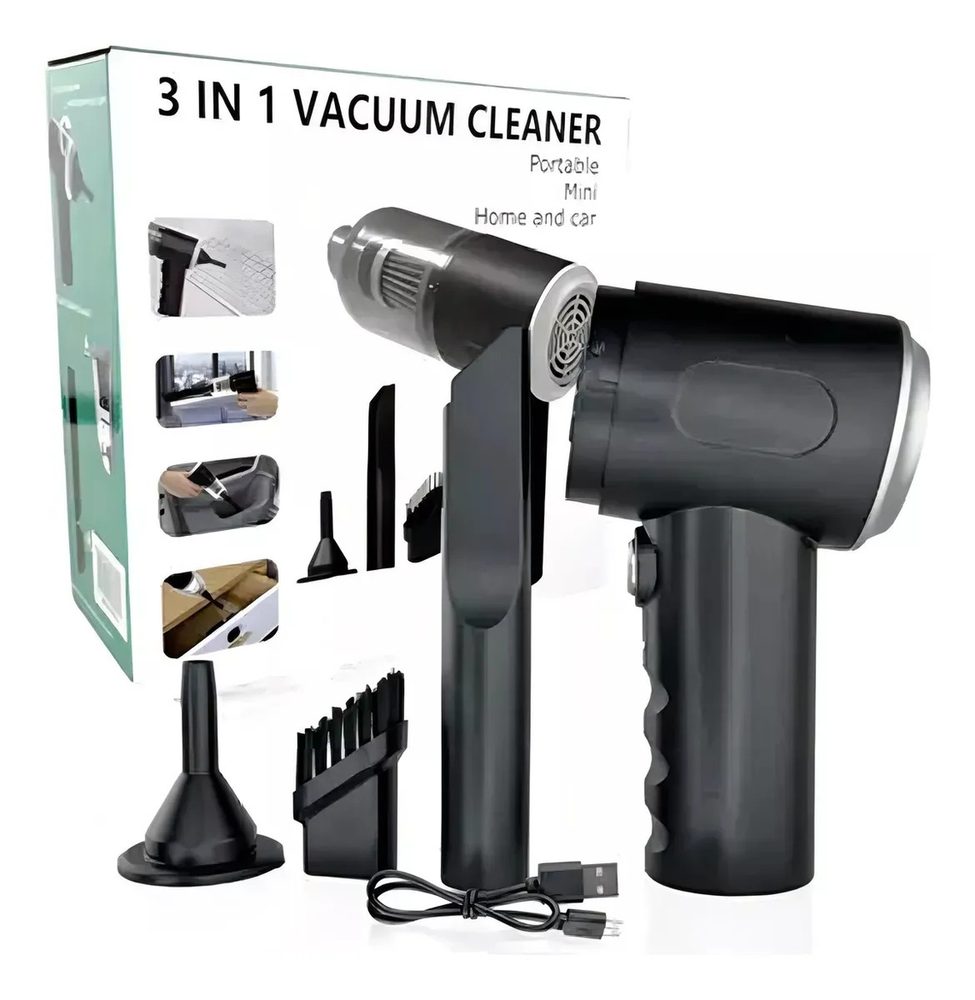 Mini Aspiradora Portátil 3 en 1 Aspiradora Esta práctica mini aspiradora portátil 3 en 1 de la marca Vacuum Cleaner es la solución ideal para mantener tus espacios impecables en todo momento. Diseñada para ofrecer máxima versatilidad y comodidad, esta aspiradora es perfecta para el hogar, la oficina y el automóvil. Función 3 en 1: Aspira, sopla y limpia, ideal para distintas necesidades de limpieza. Compacta y portátil: Su diseño compacto permite llevarla fácilmente a cualquier lugar y guardarla sin ocupar espacio. Potente y silencioso: Motor de alta potencia que asegura una limpieza efectiva sin generar mucho ruido. Accesorios incluidos: Boquillas especializadas para alcanzar los rincones más difíciles y adaptarse a diferentes superficies. Alimentación: Carga USB (batería recargable)
