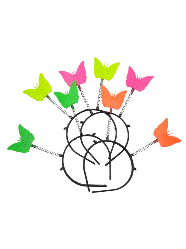 Paquete de 4 vinchas con antena, motivo mariposa fluo