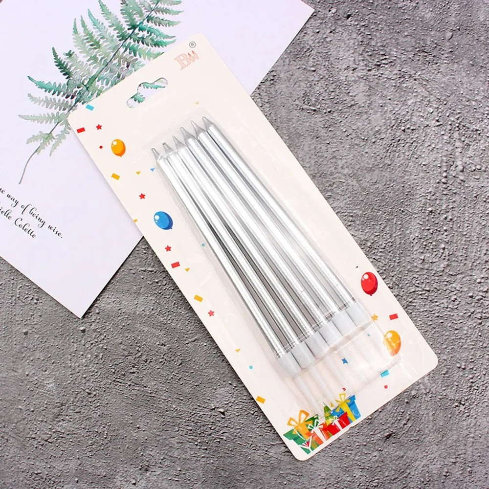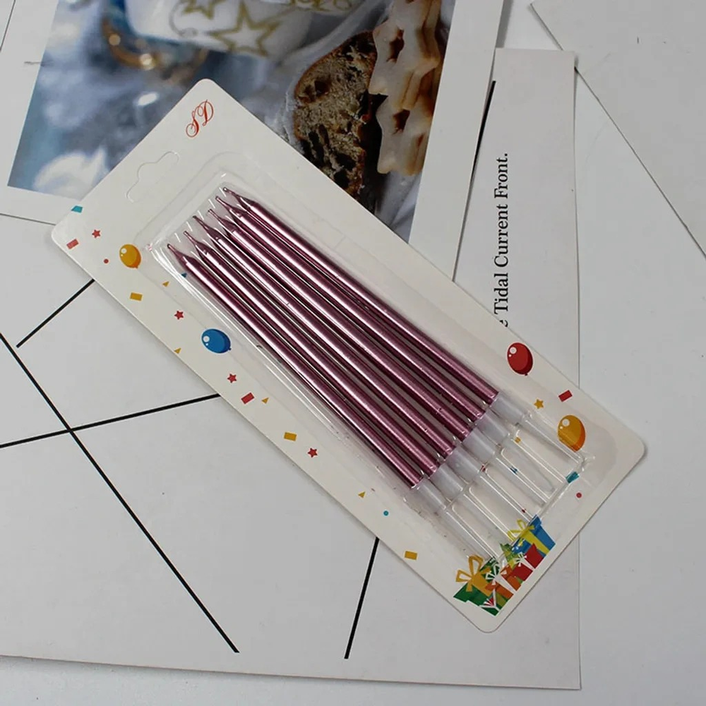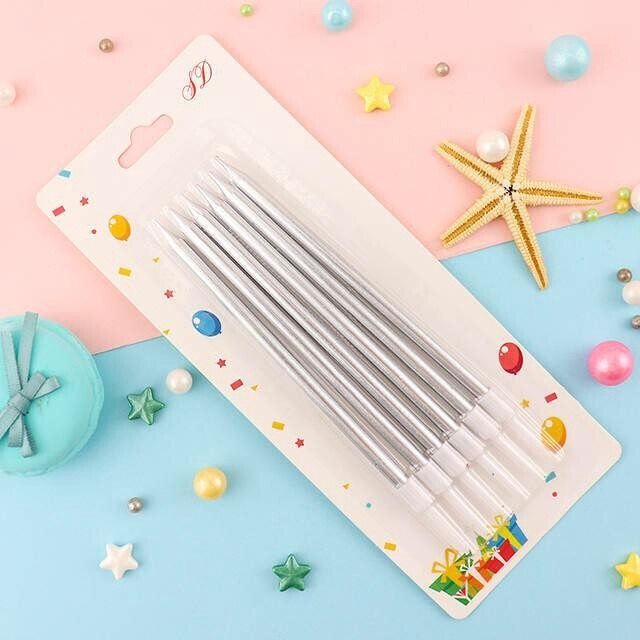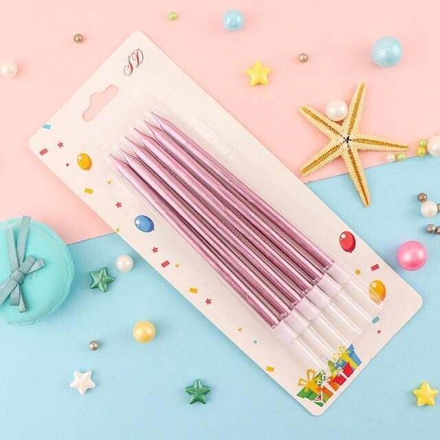 Velita color metalizada con porta vela, para adornar torta de cumpleaños u distinto eventos. Disponible en colores azul, rosa gold.