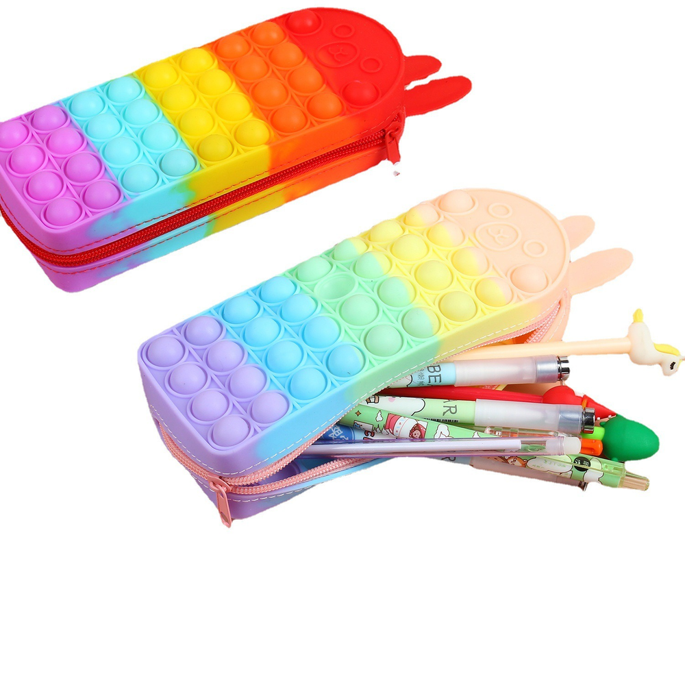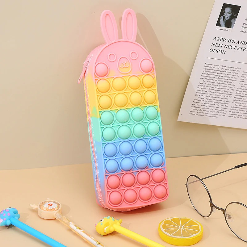 Cartuchera con diseño de conejo, multicolor y con un diseño de pop it. Vienen en mas de 5 combinacion de colores, CONSULTAR DISPONIBILIDAD.