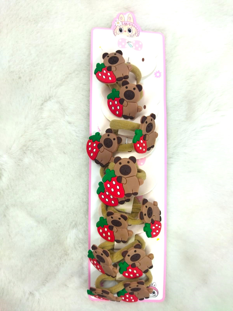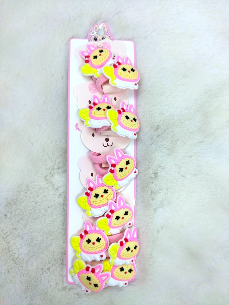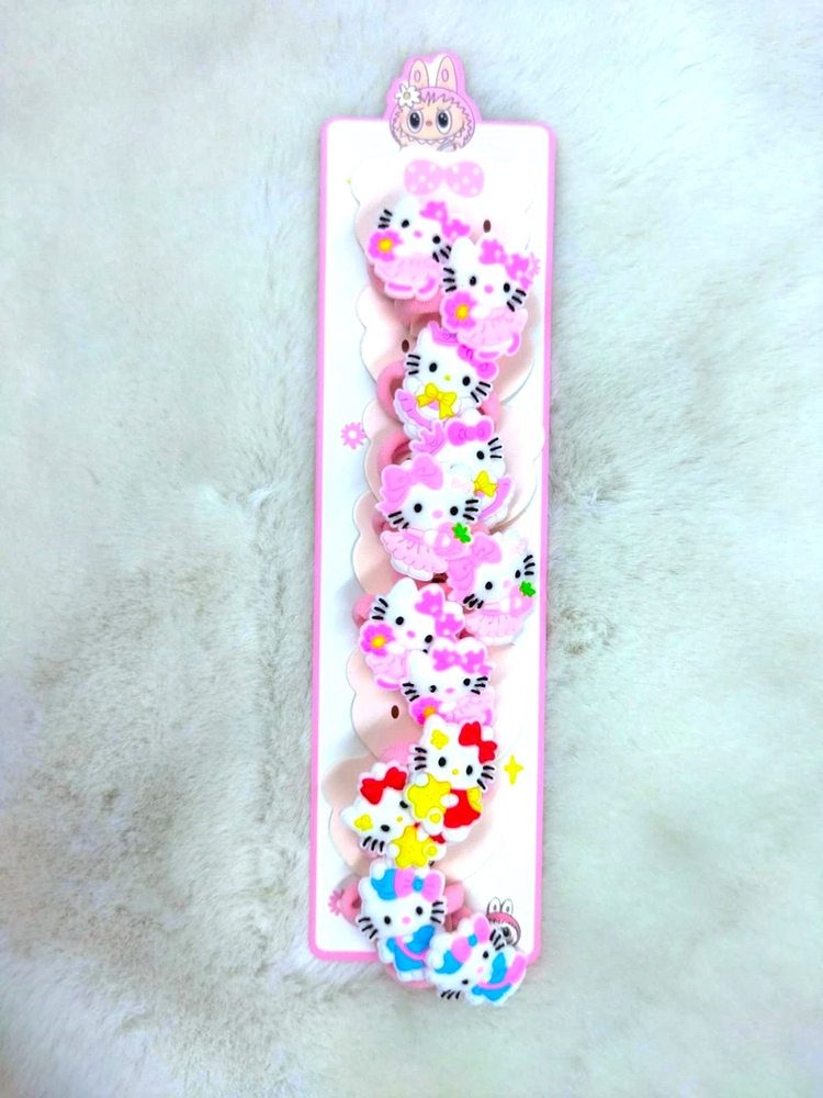 6 pares de colitas (12 uni) adornadas con personajes como Kuromi, Kitty, Melody, etc. Vienen mas de 4 modelos, consultar modelos disponibles.