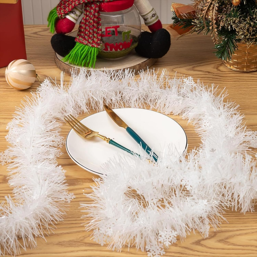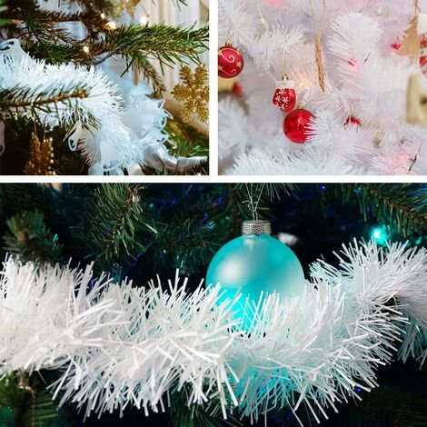 Boa color BLANCO liso ,en tira como adorno navideños. se usan como adorno para estructura arco o arbol navideños. largo: 180cm.