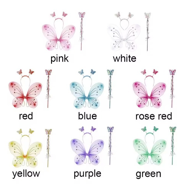 Alas de mariposa de tela tul, varios colores con varita y vincha Consultar colores disponibles.