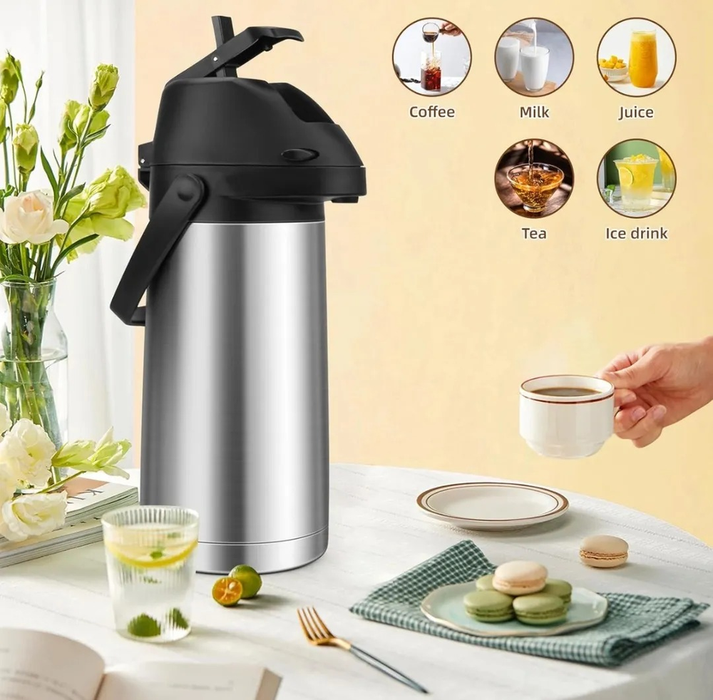TERMO BOMBA PARA CAFE, TERERE, MATE, TE O LO QUE DESEES. Termo A Bomba Doble es la solución perfecta para mantener tus bebidas a la temperatura ideal. Con una capacidad de 1.3 litros, este termo de acero inoxidable combina elegancia y funcionalidad en un diseño robusto que no solo es resistente, sino también fácil de transportar y manejar.