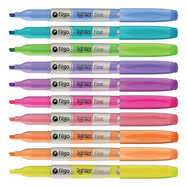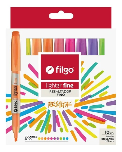 10 resaltador fluor. Resaltadores finos con punta biselasa de 1-3mm. Para resaltar, dibujar, pintar y hacer lettering. Sin xykeno ni tolueno Tapar despues de usar para evitar que se seque.