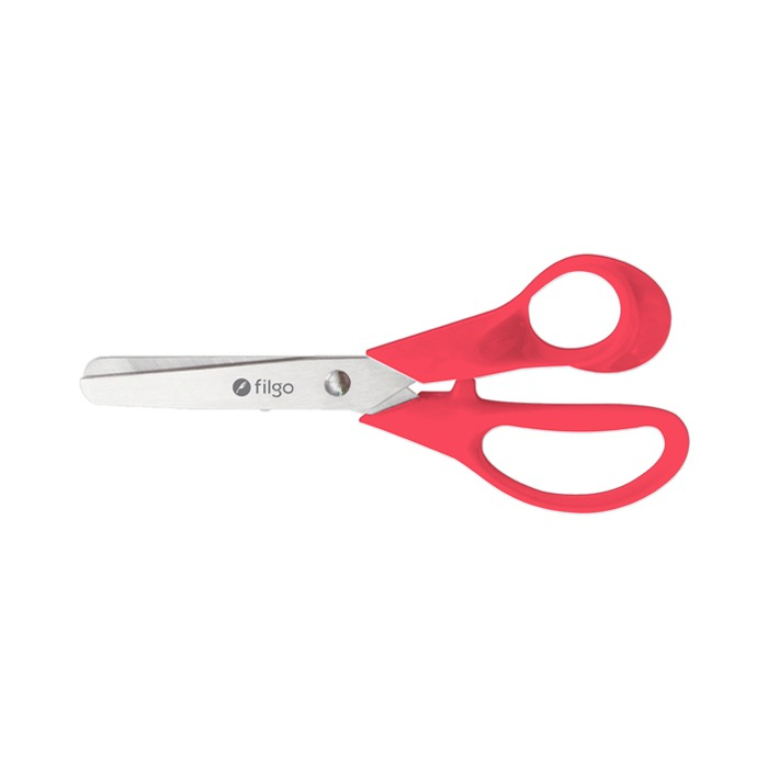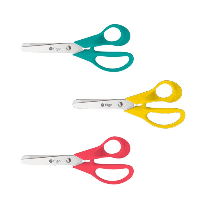 Tijera 3D, diseño para diestros • Punta roma para mayor seguridad • Cuchillas de acero inoxidable • Mango de plástico ergonómico resistente y durable
