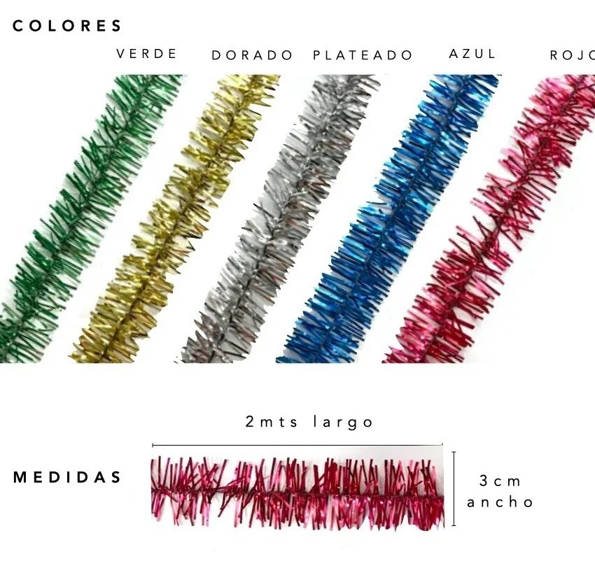 boa*lameta color liso ,en tira como adorno navideños. se usan como adorno para estructura arco o arbol navideños. largo: 180cm. color: dorado- plateado-rojo-azul, consulta stock disponible.
