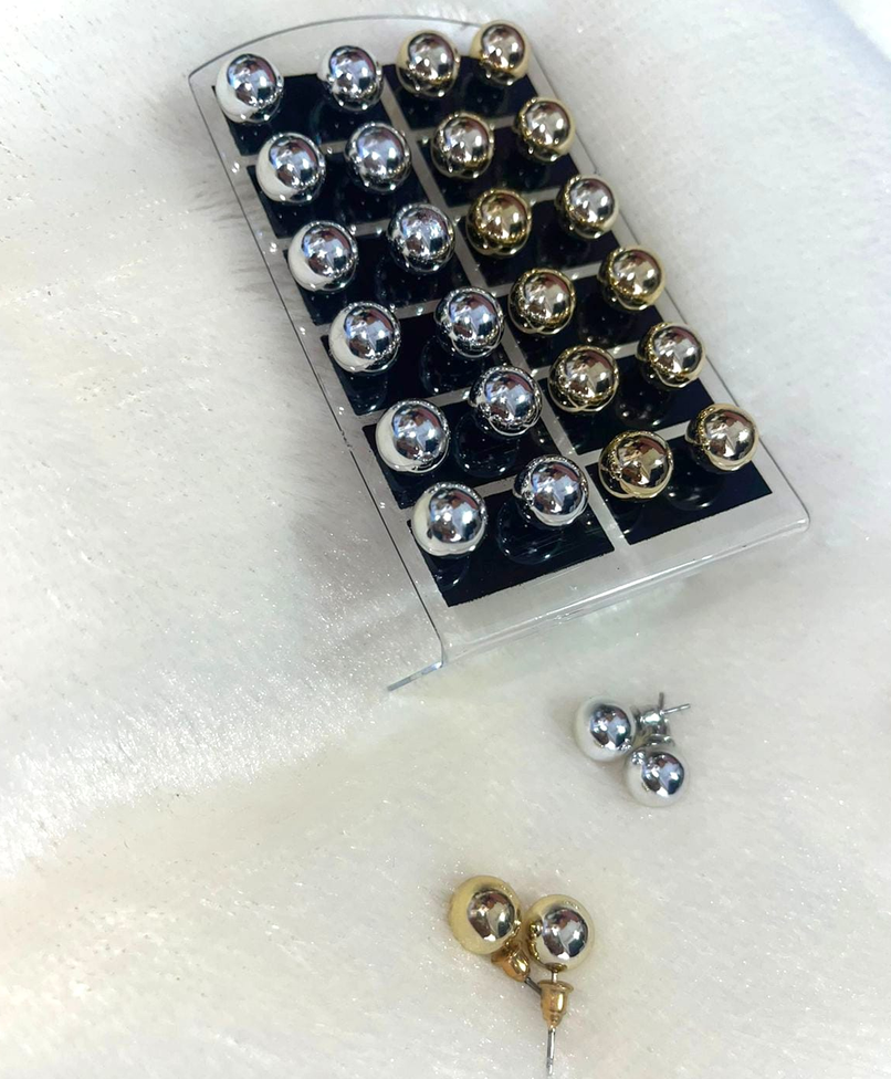 ARITO PASANTE DE PERLA DORADO Y PLATEADO, BLISTER DE 12 PARES(DOS COLORES)