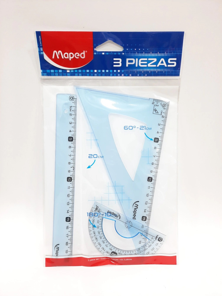 Set geometrico de 3 piezas, regla de 20cm.