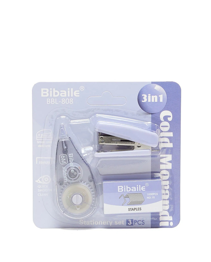 Set de engrapadora y corrector en cinta, práctico y funcional, ideal para la escuela o la oficina, elaborado con buena calidad para un uso confiable y duradero.