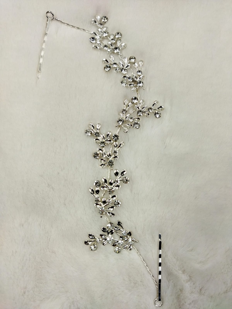 ADORNO PARA PEINADO( DIADEMAS) EN TIRA CON STRASS BLANCO, CON 2 INVISIBLE PLATEADO, PODES USARLA DE DIFERENTES FORMAS, TOCADO, MEDIA CORONA, VINCHA.