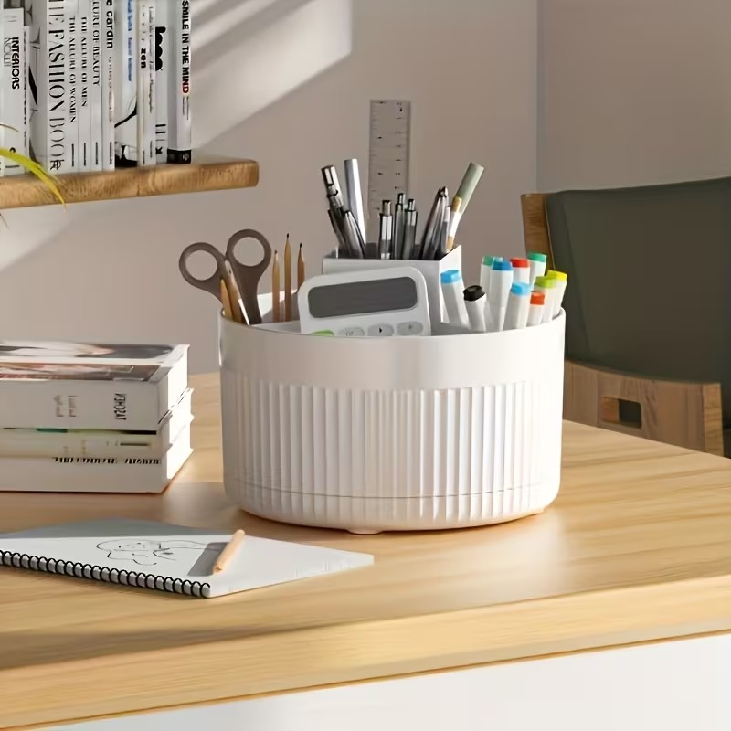 Caja de almacenamiento de cosméticos giratoria 360° con 5 compartimentos, multifuncional para organizar cosméticos, con múltiples secciones de almacenamiento, un diseño fácil y un estante para perfumes, perfecta para dormitorios y tocadores, ideal para guardar brochas de maquillaje
