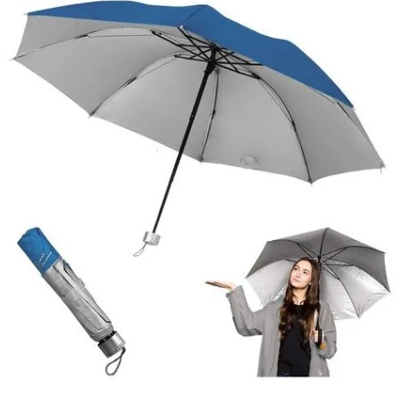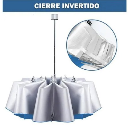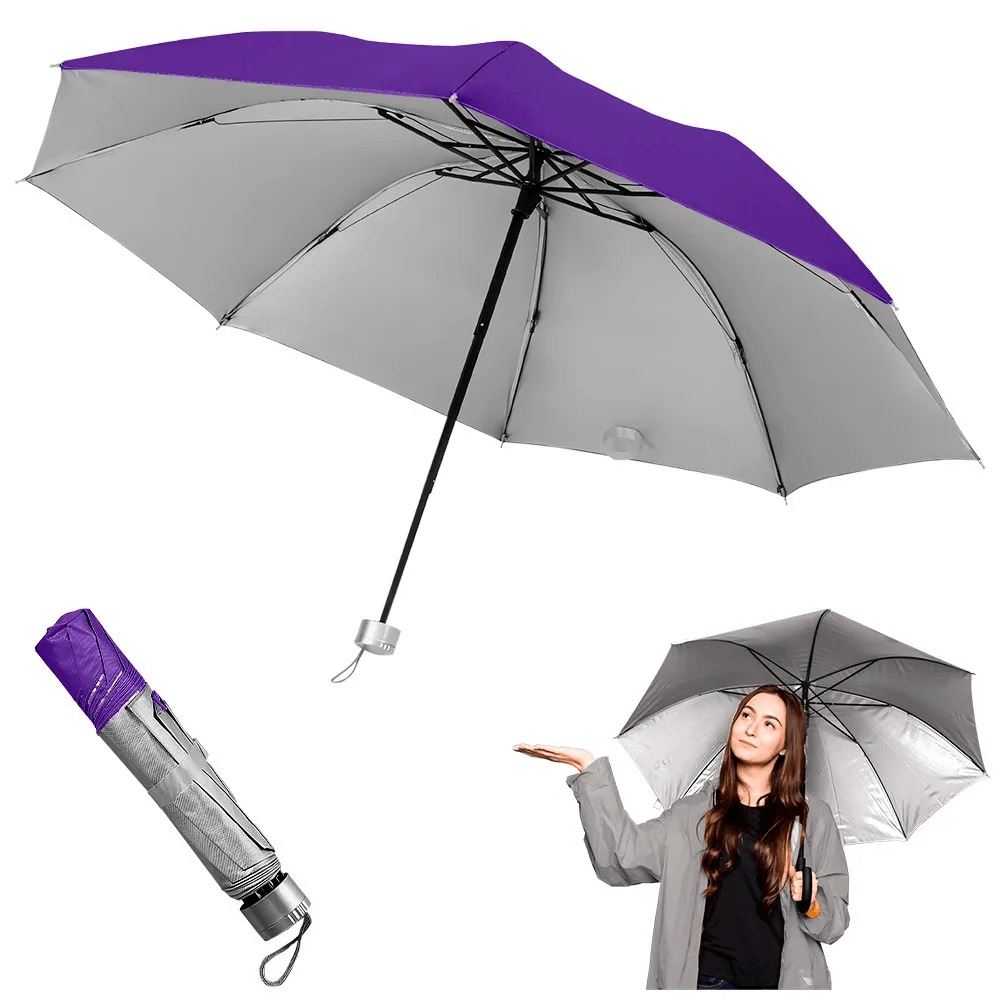 Paraguas corto plegable, color ROSA, LILA O AZUL liso por fuera, interior color plateado. Detalle: diámetro 102 cm.