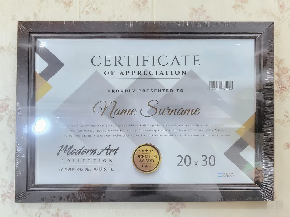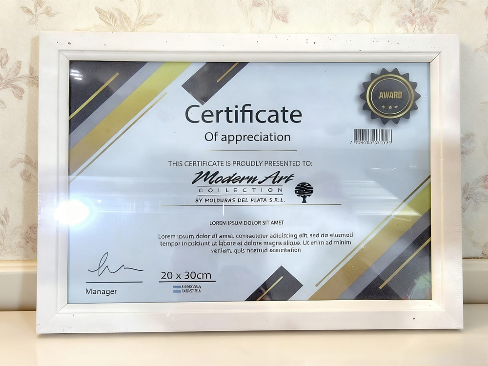 Portaretrato de marco madera, para certificado de diploma, linea modena oro, tamaño:20*30cm. color:blanco-negro.