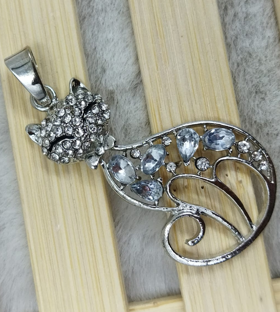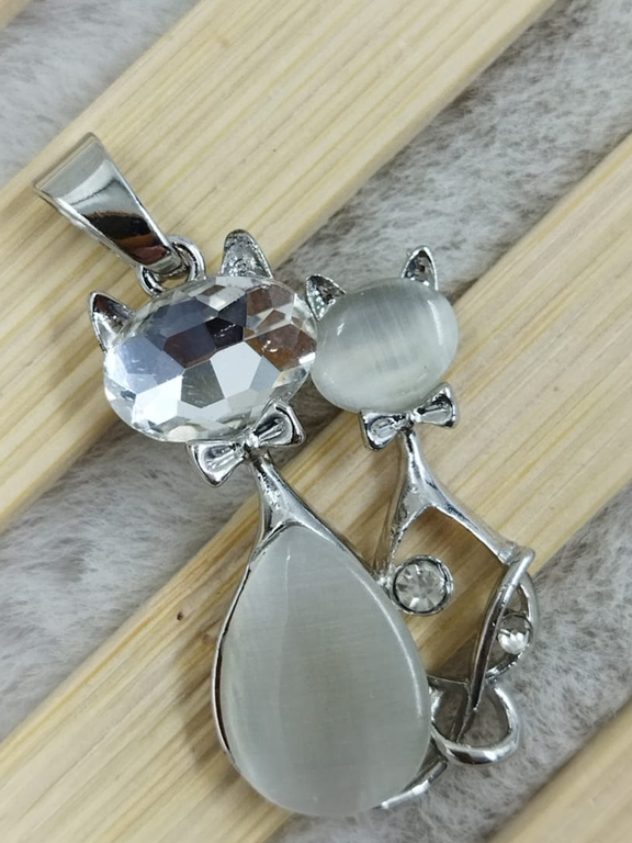 Dije gato de acero con strass, diseño gato solo, gato con pez o gato con gatito.