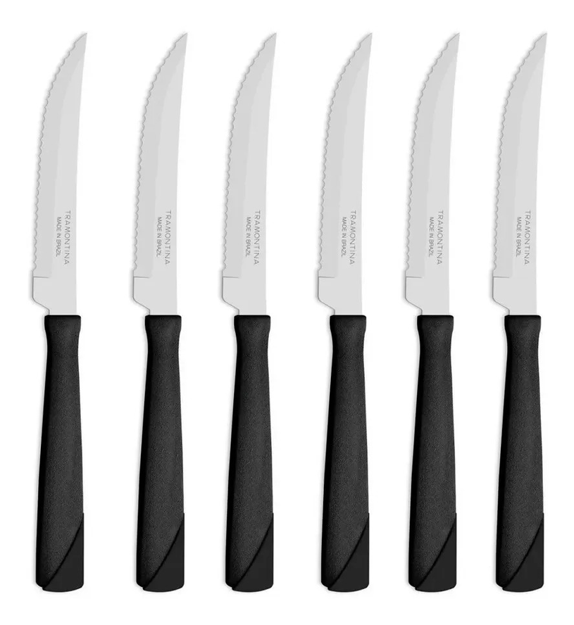 Set de 6 cuchillos tramontina, mango plastico color negro.