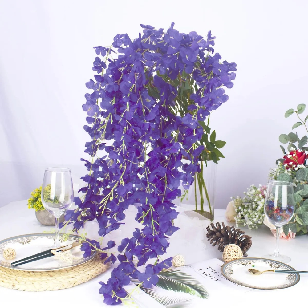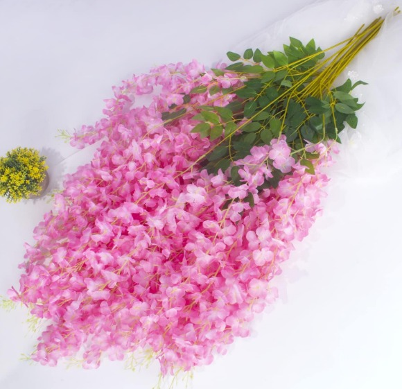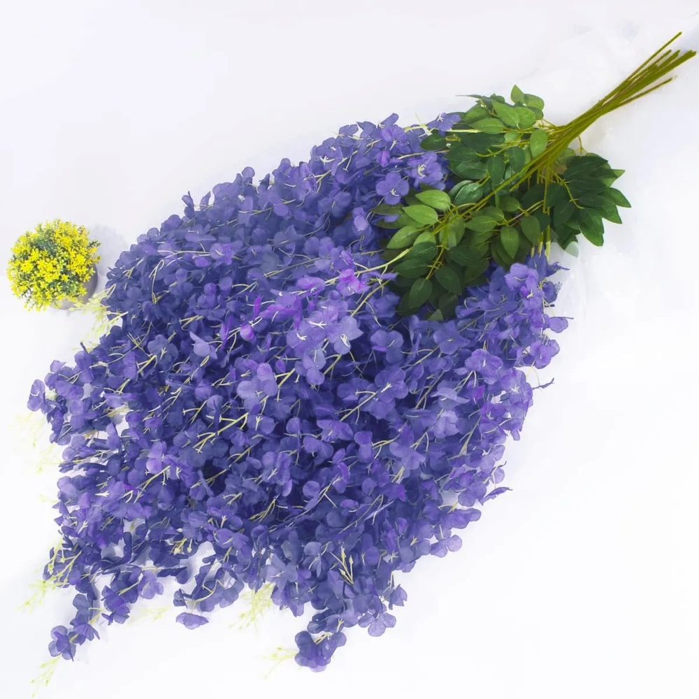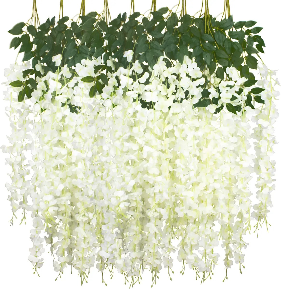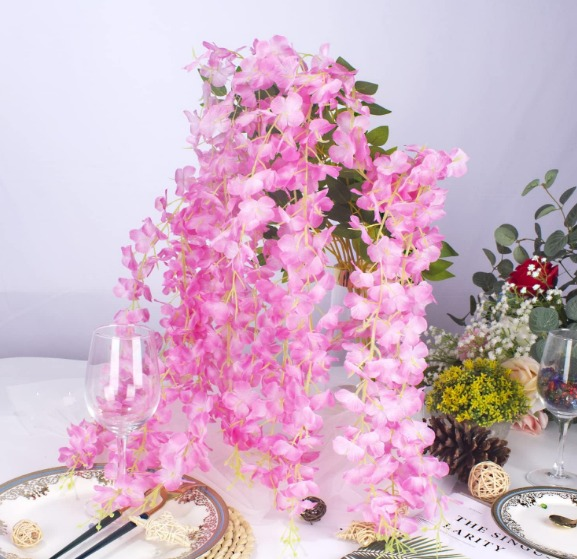Enredadera colgante con flores artificiales y hojas. Vienen varios colores.