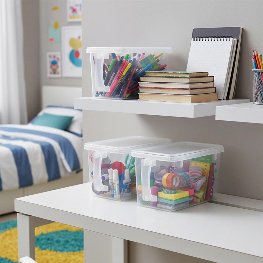 Maximizá el orden en tu hogar u oficina con este organizador multiuso de 6 litros, con medidas de 26 cm x 16 cm x 14 cm. Fabricado en plástico transparente de alta resistencia, permite visualizar fácilmente el contenido sin necesidad de abrirlo. Cuenta con una tapa que facilita el apilado seguro y práctico de varias unidades, optimizando el espacio. Las asas incorporadas brindan comodidad para transportar el organizador sin esfuerzo. Ideal para almacenar alimentos en heladeras, organizar insumos de oficina, cosméticos, artículos de higiene personal, y más. Su diseño versátil y liviano lo hace fácil de limpiar y duradero para un uso prolongado.