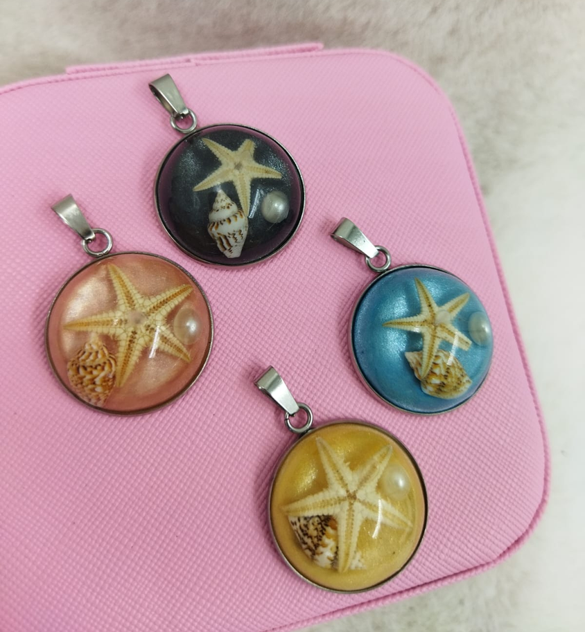 Dije con diseño de estrella de mar, diametro 2.5 cm aproximadamente.