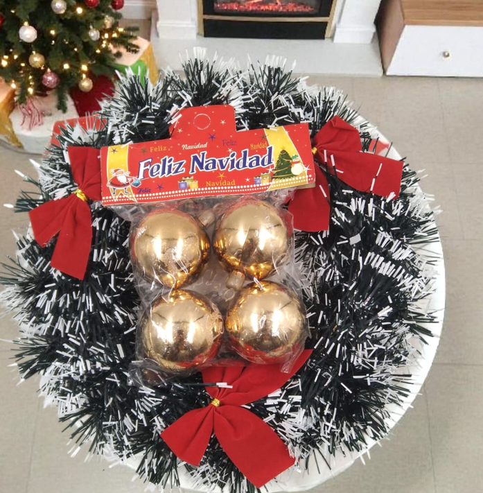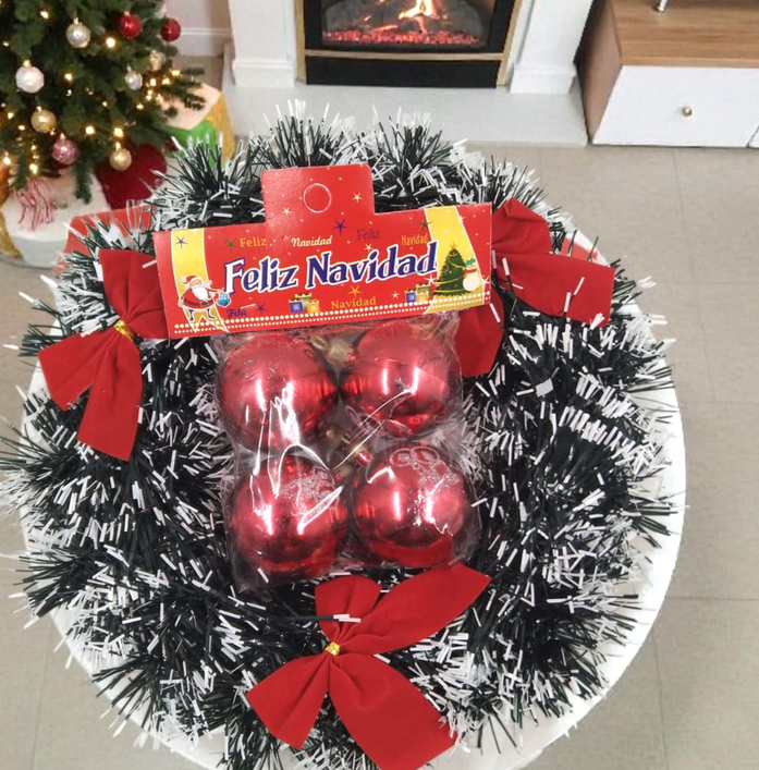 Adorno bochas decorada, 4 bochas de 5cm.