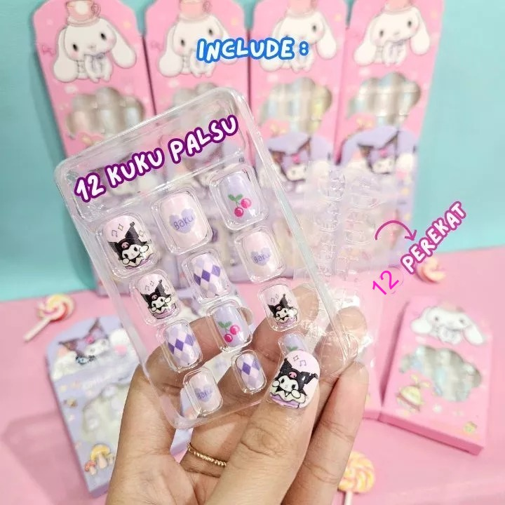 UÑO POSTIZA CAJA*12U C/PEGAMENTO PARA NIÑAS, CONSULTE POR VARIEDAD