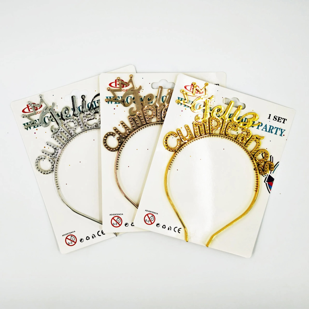 Vincha plastico feliz cumpleaños, vienen en 3 colores. CONSULTAR COLORES DISPONIBLES.