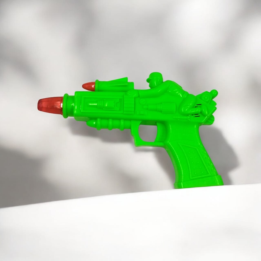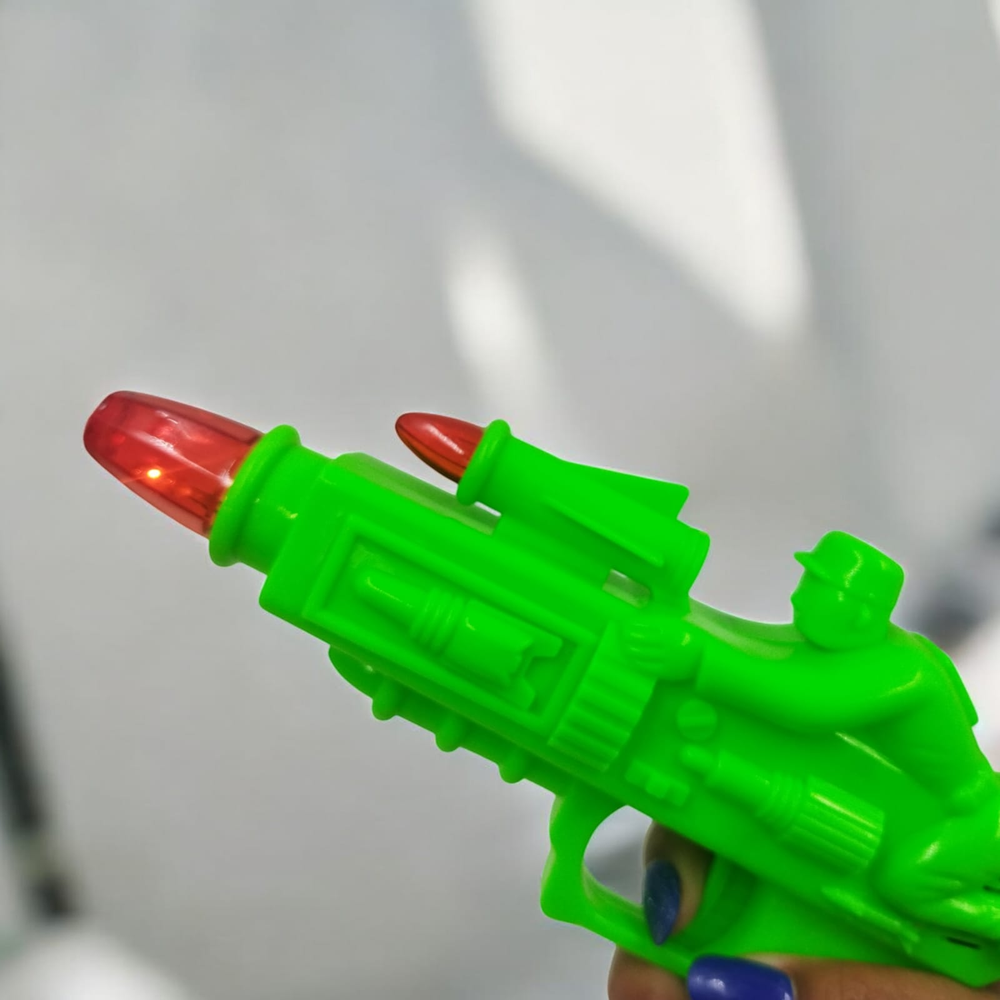 Este juguete de pistola produce una impresionante explosión de sonido y una vibración increíble cuando se activa. Para el funcionamiento de los juguetes con efectos de luz y sonido, se requieren pilas AA (no incluidas).
