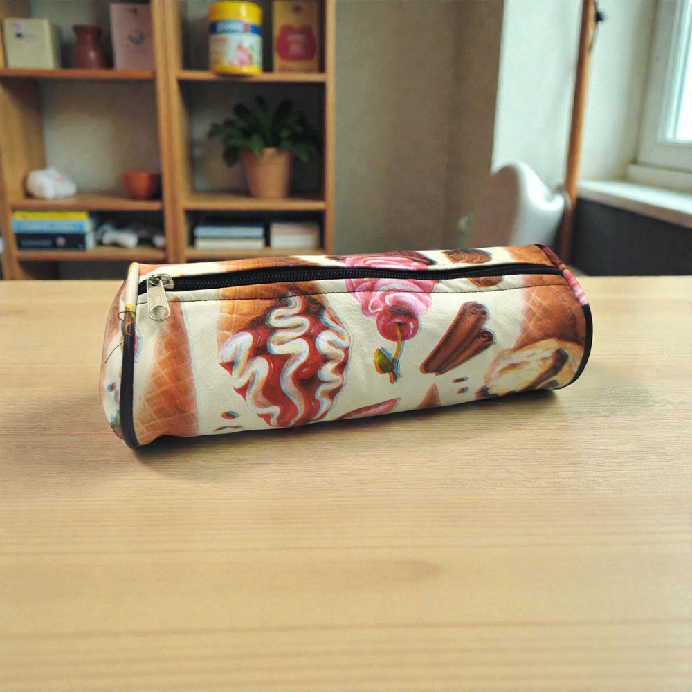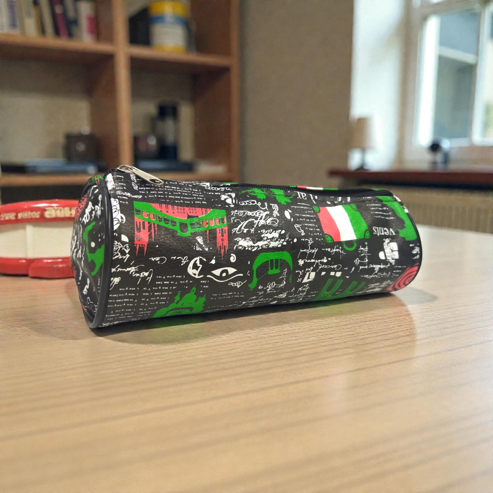 Cartuchera de cuerina estampadas, un cierre. Molde ovalado. Consultar estampas disponibles.