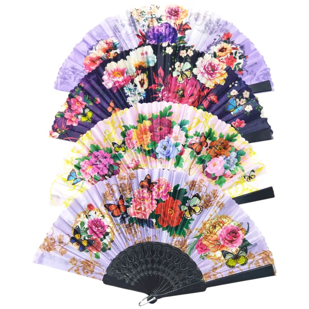 Abanico de tela con varilla de plástico. Largo de 23 cm. Consulta modelo de estampas disponibles.
