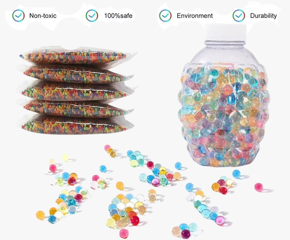 Viene un pack de bolitas de hidrogel DE COLORES. No dejes que se acabe la munición de tu pistola de hidrogel. ¡Simplemente sumerja las perlas en agua por 8 a 12 horas y agréguelos a su cartucho! ¡Las perlas estallan con el impacto! COLORES ALEATORIOS!!!!!
