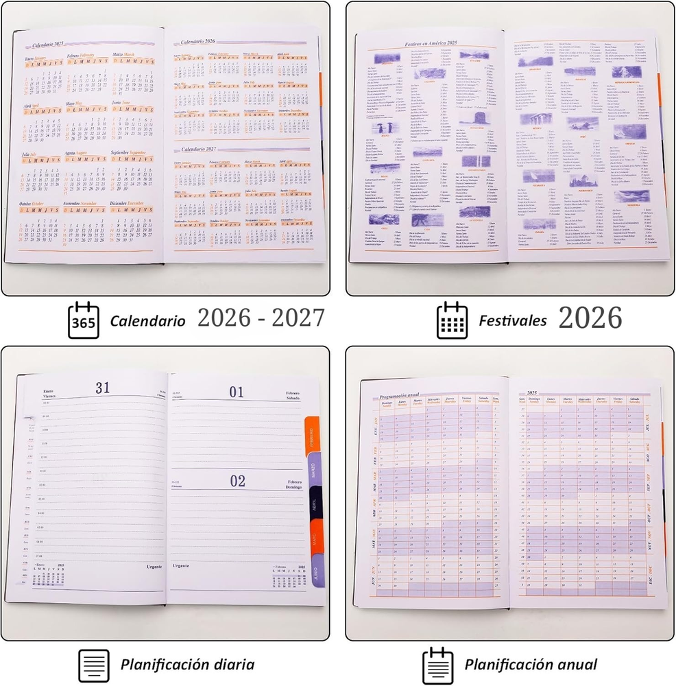 PLANIFICACIÓN ANUAL COMPLETA: Las fechas de la agenda están diseñadas desde enero de 2026 a diciembre de 2027, cubriendo perfectamente 12 meses, específicas para cada mes, semana y día, lo que lo hace conveniente para la planificación anual completa. Vienen en 3 colores CONSULTAR DISPONIBILIDAD.